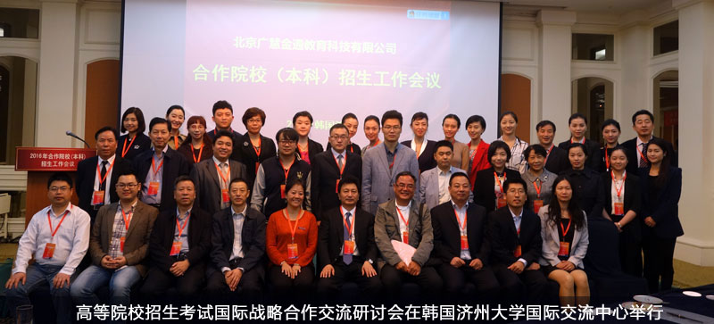 為貫徹落實(shí)教育部《國(guó)家中長(zhǎng)期教育改革和發(fā)展規(guī)劃綱要(2010-2020年)》的指示精神,加強(qiáng)與國(guó)外高水平大學(xué)合作,建立國(guó)際間合作交流平臺(tái),聯(lián)合開展高水平科學(xué)研究,應(yīng)韓國(guó)濟(jì)州國(guó)立大學(xué)邀請(qǐng),2015年10月11日至14日,北京廣慧金通教育科技有限公司董事長(zhǎng)焦殿成和來(lái)自全國(guó)開辦民航空乘專業(yè)的國(guó)內(nèi)知名高等院校招生工作部門領(lǐng)導(dǎo),計(jì)50余人一同前往在韓國(guó)濟(jì)州國(guó)立大學(xué)學(xué)生交流中心,與濟(jì)州國(guó)立大學(xué)招生部負(fù)責(zé)人等相關(guān)人員共同召開 “高等院校招生考試國(guó)際戰(zhàn)略合作交流研討會(huì)”。