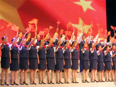 重慶市旅游行業(yè)文藝匯演重師大空乘學(xué)子奪大獎(jiǎng) 本網(wǎng)訊 10月29日,由重慶市旅游局主辦的“重慶市旅游行業(yè)‘唱讀講傳’文藝匯演”在重慶人民大廈隆重舉行,重慶市副市長(zhǎng)譚棲偉、市旅游局局長(zhǎng)劉旗等領(lǐng)導(dǎo)出席了文藝匯演活動(dòng)。重慶師范大學(xué)地理與旅游學(xué)院藝術(shù)教育專(zhuān)業(yè)(空乘與禮儀方向)組隊(duì)代表學(xué)校參賽,榮獲重慶市旅游行業(yè)“唱讀講傳”文藝匯演經(jīng)典誦讀類(lèi)節(jié)目第一名。