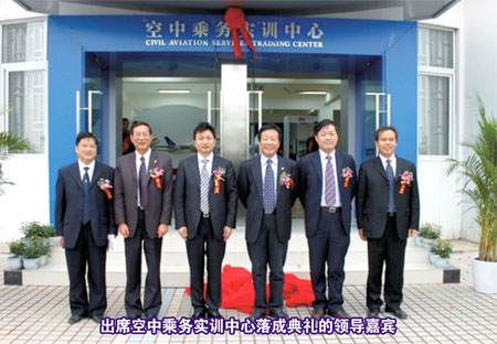 剪彩儀式上,焦殿成董事長首先講話,他表示,能在桂林旅專25周年校慶之際舉行空乘實訓中心落成典禮,感到十分高興。焦董事長在回顧校企雙方合作的過程后,稱贊桂林旅專是一個真誠的合作伙伴,并對雙方合作進入實質(zhì)性階段表示祝賀。他表示,“金通航空培訓”將繼續(xù)為桂林旅專提供專業(yè)的管理團隊、先進的教學軟件、專業(yè)的教學設(shè)備。黃國良副校長在講話中表示,我校將繼續(xù)以合作為紐帶,以就業(yè)為導向,培養(yǎng)高素質(zhì)空乘人才。同時希望系部加強管理,嚴格維護,提高使用效率,增強教學效益;希望空乘專業(yè)學生們珍惜學校為專業(yè)創(chuàng)造的教學條件,志存高遠,為將來圓夢藍天而努力學習;希望校企雙方同心同德,將空乘專業(yè)辦好,為祖國日益發(fā)展的航空事業(yè)做出應(yīng)有貢獻。