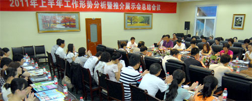 會議結(jié)束時,焦殿成董事長兼總經(jīng)理就2011年上半年的主要工作情況、推介展示會總結(jié)和部署2011年下半年工作任務(wù),著重講了三個方面工作: