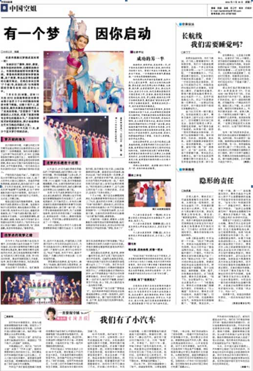2012年7月18日 中國民航報(bào)第八版就2012年全國高等院校空乘專業(yè)推介展示會 刊登 《有一個(gè)夢因你啟動》文章。