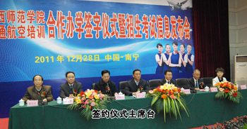 本網(wǎng)訊:伴隨著新年的鐘聲,在2011年即將渡過之際的12月28日,廣西師范學(xué)院文星樓報告廳充滿了節(jié)日的喜慶氣氛。在這里,廣西師院與北京廣慧金通教育科技有限公司舉行了合作辦學(xué)簽字儀式暨招生考試信息發(fā)布會。廣西師范學(xué)院黨委書記劉力、院長劉慕仁,北京廣慧金通教育科技有限公司董事長兼總經(jīng)理焦殿成、副總經(jīng)理兼院校教學(xué)工作部總經(jīng)理盛美蘭,以及受邀參加的中國南方航空、中國東方航空、廈門航空、深圳航空、長榮航空等各航空公司領(lǐng)導(dǎo)蒞臨觀摩了本次簽約儀式。廣西師范學(xué)院各部門領(lǐng)導(dǎo)以及09、10級新聞傳播學(xué)院的近300名師生列席了簽約儀式。簽約儀式由廣西師范學(xué)院黨委副書記、紀(jì)委書記梁半農(nóng)主持。 廣西師范學(xué)院與北京廣慧金通教育科技有限公司合作開辦的播音與主持藝術(shù)(空中乘務(wù)方向)專業(yè),是廣西自治區(qū)高校中唯一招收空中乘務(wù)藝術(shù)類本科的專業(yè),填補了廣西壯族自治區(qū)在本科學(xué)歷層次空乘人才培養(yǎng)上的空白。而對于“學(xué)高為師,身正為范”的師范類院校來說,肩上重任更是非同一般。廣西師范學(xué)院,自1953年建校以來,就始終秉承著“德才并育,知行合一”的校訓(xùn),厚德載物,迅猛發(fā)展。 簽約儀式開始,梁半農(nóng)副書記宣讀了廣西壯族自治區(qū)教育廳關(guān)于廣西師范學(xué)院與北京廣慧金通教育科技有限公司合作辦學(xué)的批文。 隨后,廣西師范學(xué)院法人代表、校長劉慕仁與北京廣慧金通教育科技有限公司法人代表、董事長焦殿成簽署辦學(xué)協(xié)議。 廣西師范學(xué)院招生就業(yè)處陳宗武處長詳細(xì)地介紹了空乘專業(yè)的學(xué)科建設(shè)、發(fā)展、招生情況、招生原則、招生計劃、報告條件及報考須知等情況。 劉力書記代表廣西師范學(xué)院對出席本次儀式的嘉賓表示熱烈歡迎。劉力書記指出,與金通航空培訓(xùn)聯(lián)合開辦本科層次空乘專業(yè),這是符合雙方及中國民航業(yè)發(fā)展需要、開拓創(chuàng)新、搶抓機(jī)遇的科學(xué)決策;是充分發(fā)揮各處資源優(yōu)勢,實現(xiàn)雙方互惠共贏的先進(jìn)意識,進(jìn)一步拓寬學(xué)校人力物力資源渠道、增強學(xué)校在社會的影響力。他希望此次校企合作,雙方應(yīng)秉承真誠合作、互利互惠、共同發(fā)展的原則,共同努力、共同見證空乘專業(yè)的成長和壯大,把空乘專業(yè)發(fā)展成為我校及廣西高校的品牌專業(yè)。 董事長焦殿成在簽約儀式上致辭。他說,廣西是美麗的八桂之地,奇特的喀斯特地貌,燦爛的文物古跡,濃郁的民族風(fēng)情,使廣西獨具魅力!作為全國重要僑鄉(xiāng)、祖國的南大門,也是連接我國與東盟國家的橋頭堡,特殊的地形地貌和豐富的旅游資源為民航業(yè)的發(fā)展提供了優(yōu)越的條件。廣西壯族自治區(qū)現(xiàn)有8個民用機(jī)場,已經(jīng)開辟了約170條航線,共有34家國內(nèi)外航空公司進(jìn)駐廣西市場,航線網(wǎng)絡(luò)通達(dá)國內(nèi)多個發(fā)達(dá)地區(qū)和港澳臺地區(qū),覆蓋除文萊以外的其他東盟國家。而“十二五”時期,廣西提出了實現(xiàn)“富民強桂”的跨越目標(biāo),將繼續(xù)把民航建設(shè)放在交通建設(shè)的突出位置,計劃投入170億元建設(shè)15個重大民航項目。面對祖國民航業(yè)快速發(fā)展的有利契機(jī),校企之間真誠合作,攜手培養(yǎng)民航業(yè)發(fā)展所需要的高端人才,將是高等院校和企業(yè)科學(xué)發(fā)展的的必由之路、創(chuàng)新之路和希望之路。 “十年樹木百年樹人”,作為肩負(fù)著國家科學(xué)發(fā)展基礎(chǔ)性工程的高等院校,在人才培養(yǎng)上更應(yīng)首當(dāng)其沖、責(zé)任重大。北京廣慧金通教育科技有限公司與廣西師范學(xué)院采用校企合作辦學(xué)模式,共同開辦本科層次的播音與主持藝術(shù)專業(yè)(空乘與禮儀方向),是合作雙方認(rèn)真考察、縝密調(diào)研、履行正規(guī)批報程序所做出的科學(xué)決策。合作期限為8年,目標(biāo)和思路明確,權(quán)利和義務(wù)清楚,職責(zé)和任務(wù)具體。該專業(yè)為全日制藝術(shù)類本科,標(biāo)準(zhǔn)學(xué)制四年。總體構(gòu)想是:充分發(fā)揮校企雙方的資源優(yōu)勢,立足廣西,輻射西南,服務(wù)全國,努力為祖國民航業(yè)選拔、培養(yǎng)、輸送合格的空乘人才和管理人才,真正使廣西師范學(xué)院播音與主持藝術(shù)(空中乘務(wù)方向)得到科學(xué)和可持續(xù)發(fā)展。 廣西師范學(xué)院與北京廣慧金通教育科技有限公司成為理想的合作伙伴,是合作雙方進(jìn)行科學(xué)考察調(diào)研的理性選擇。廣西師范學(xué)院是一所辦學(xué)歷史悠久、教學(xué)資源豐富、在廣西乃至全國有一定影響力的高水平院校。我們與廣西師范學(xué)院合作開辦的播音與主持藝術(shù)(空中乘務(wù)方向),培養(yǎng)多民族的空乘人才,即發(fā)揮了雙方的資源優(yōu)勢,同時也使善良淳樸的壯、漢、瑤、苗等12個世居民族的子孫后代走向國際、國內(nèi)高端服務(wù)和管理崗位,這是利于當(dāng)今、著眼未來、功在長遠(yuǎn)的千秋偉業(yè)。我們將真誠地與廣西師范學(xué)院一道,遵循民航空乘人才的培養(yǎng)