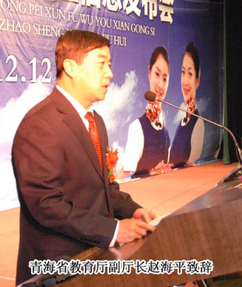 本網(wǎng)訊 隨著我國民航事業(yè)的快速發(fā)展,民航空乘人才的選拔培養(yǎng)受到社會高度關(guān)注。成為一名空中乘務(wù)員(空姐、空保)一直是不少莘莘學(xué)子展翅藍(lán)天、高薪就業(yè)、實現(xiàn)價值的夢想。近幾年,空乘專業(yè)也因此受到考生和家長們的追捧。2011年12月12日,在青海師范大學(xué),隆重舉行了青海師范大學(xué)與“金通航空培訓(xùn)”合作辦學(xué)簽字儀式暨招生考試信息發(fā)布會。以“突出民航特色、確立本科層次、培養(yǎng)高端服務(wù)人才”為辦學(xué)理念的空乘專業(yè)落戶青海師范大學(xué),標(biāo)志著青海省的莘莘學(xué)子在本地也能接受本科層次民航空乘專業(yè)教育,進(jìn)而走入民航服務(wù)領(lǐng)域和管理崗位,實現(xiàn)遨游藍(lán)天的夢想。 青海省人民政府副秘書長吳慶生、青海省發(fā)改委副主任王長安、青海省財政廳副廳長肖玉海,教育界、民航業(yè)嘉賓,以及青海師范大學(xué)、金通航空培訓(xùn)服務(wù)有限公司相關(guān)領(lǐng)導(dǎo)和職能部門領(lǐng)導(dǎo)、青海師范大學(xué)音樂學(xué)院教師、學(xué)生,十余家新聞媒體,共同出席金通航空培訓(xùn)與青海師范大學(xué)合作辦學(xué)簽約儀式暨招生考試信息發(fā)布會。青海師范大學(xué)黨委書記張銀生、金通航空培訓(xùn)服務(wù)有限公司董事長焦殿成、青海省教育廳副廳長趙海平先后發(fā)表講話。