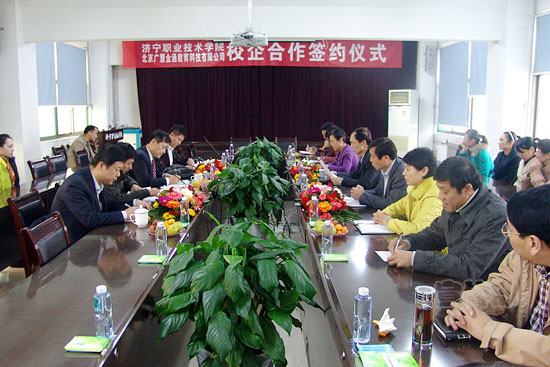 2012年11月8日下午,濟(jì)寧職業(yè)技術(shù)學(xué)院與北京廣慧金通教育科技有限公司校企合作簽約儀式在該校行政樓三樓會(huì)議室舉行。院長(zhǎng)于建民、副院長(zhǎng)孫志春、北京廣慧金通教育科技有限公司副總經(jīng)理付曉軍、財(cái)務(wù)處處長(zhǎng)趙友、及學(xué)院宣傳部、教務(wù)處、招生辦、科研處、財(cái)務(wù)處、實(shí)訓(xùn)中心、校企合作辦公室等部門負(fù)責(zé)人出席了簽約儀式。儀式由副院長(zhǎng)孫志春主持。