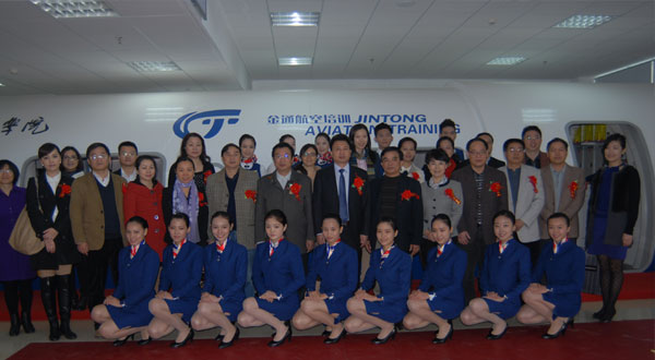 廣西師范學院副院長黃初升教授、北京廣慧金通教育科技有限公司董事長兼總經(jīng)理焦殿成先生、學工部龍妮娜部長、財務處鄒循東處長、招生就業(yè)處鄒勇處長、后勤處陳宗武處長、國有資產(chǎn)管理處陳名賢處長、校團委梁亮副書記、教務處歐啟忠 副處長、招生就業(yè)處陸春副處長、新聞傳播學院黨總支王科書記、李穗副書記、周素珍副院長、黃卓瑤副院長、北京廣慧金通教育科技有限公司副總經(jīng)理盛美蘭女士、付曉軍先生及空乘專業(yè)全體學生見證了該院校企合作史上光輝的一刻。在剪彩儀式中,與會領導及嘉賓參觀、體驗模擬機艙,并觀看了學生代表在艙內(nèi)的安全演示和禮儀教學成果。隨后在學生的介紹下觀賞了199架涵蓋目前國內(nèi)外航空公司所以機型的飛機模型。