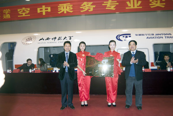 11月22日上午,山西師范大學(xué)空乘專業(yè)實(shí)訓(xùn)中心揭牌儀式隆重舉行。山西師范大學(xué)副校長(zhǎng)衛(wèi)建國(guó)、北京廣慧金通教育科技有限公司董事長(zhǎng)兼總經(jīng)理焦殿成,以及山西師范大學(xué)相關(guān)領(lǐng)導(dǎo)、北京廣慧金通教育科技有限公司駐山西師范大學(xué)工作處人員和山西師范大學(xué)空乘專業(yè)學(xué)生參加了揭牌儀式。