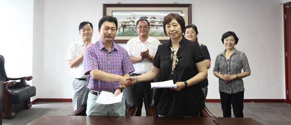 最后,焦殿成董事長與隋文慧校長代表雙方簽署了《北京廣慧金通教育科技有限公司 山東師范大學(xué)歷山學(xué)院合作辦學(xué)協(xié)議》,并合影留念,簽約儀式圓滿結(jié)束。