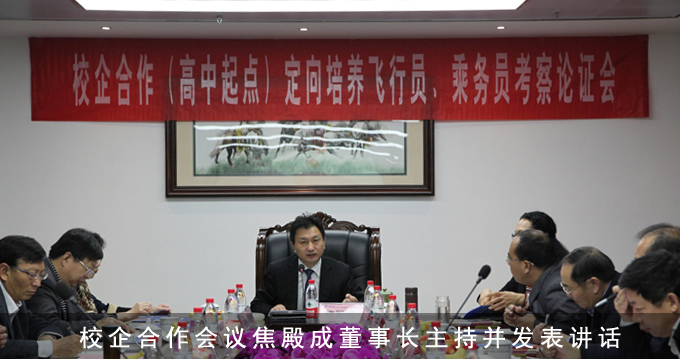 首先,焦殿成董事長對參加會議的各位院校領導表示熱烈的歡迎。焦總指出,校企合作聯合培養(yǎng)民航服務人才,是全面貫徹落實黨中央、國務院和習近平總書記的一系列指示精神,是依據國家教育政策、加快實施高等教育由學術型向技能型人才培養(yǎng)方式轉變,適應高等院校發(fā)展趨勢,滿足民航業(yè)人才需求的新生事物,具有廣闊的發(fā)展空間和美好愿景。