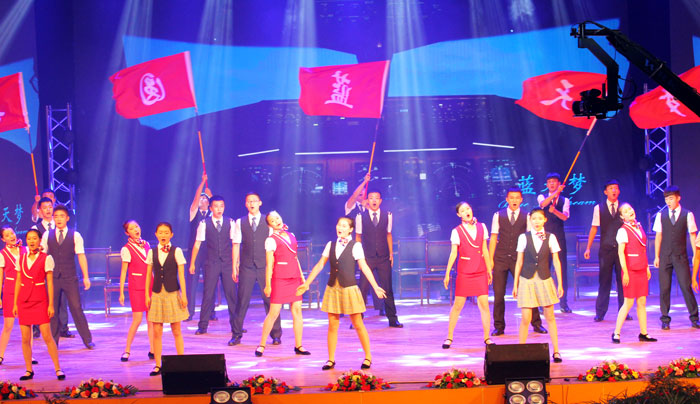 為了讓高中學(xué)生們切身感受“2015年全國高等院校空乘專業(yè)推介展示會(huì)”的魅力,主辦方、協(xié)辦方、承辦方一致同意在閉幕式暨頒獎(jiǎng)晚會(huì)現(xiàn)場(chǎng),由30名學(xué)生共同表演舞蹈《共圓藍(lán)天夢(mèng)》!豆矆A藍(lán)天夢(mèng)》是為增加高中學(xué)生的集體榮譽(yù)感和團(tuán)隊(duì)精神,由北京廣慧金通教育科技有限公司出資,專門打造的一首歌曲。歌曲旋律活潑、節(jié)奏明快、歌詞積極向上,表達(dá)出空乘專業(yè)學(xué)子期盼圓夢(mèng)藍(lán)天的美好愿望。