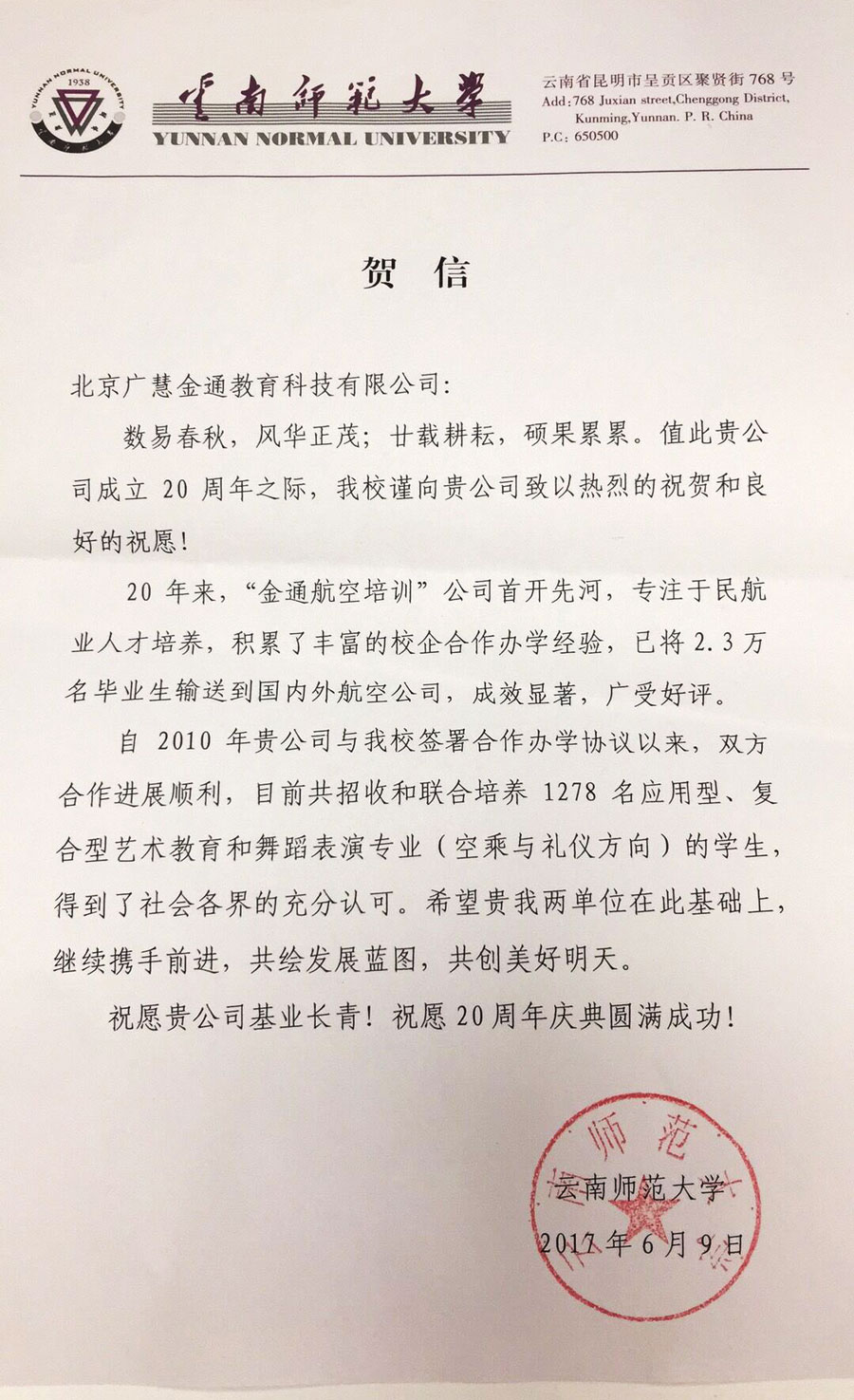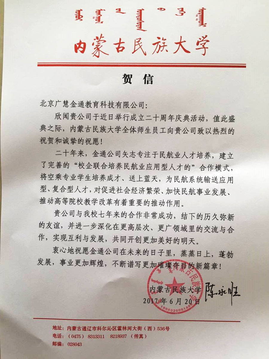 公司慶典在即,各方賀辭助力--熱烈祝賀北京廣慧金通教育科技有限公司成立二十周年