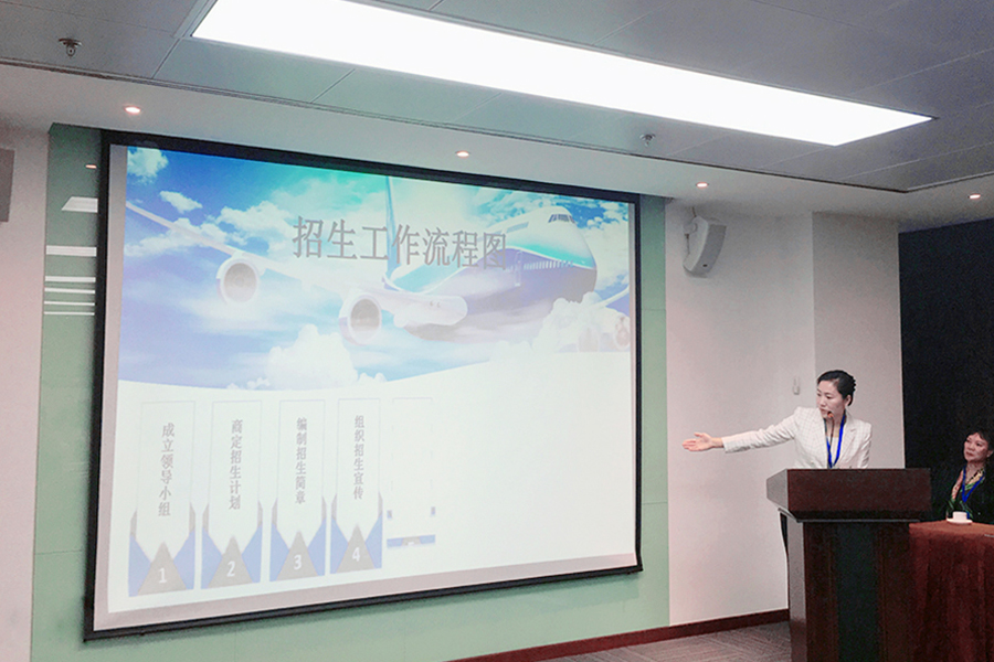北京廣慧金通教育科技有限公司副總經(jīng)理兼校企合作部總經(jīng)理付曉軍作“校企合作開(kāi)辦民航空乘專(zhuān)業(yè)項(xiàng)目論證和說(shuō)明”的介紹。公司副總經(jīng)理邱靜以及公司教學(xué)部總經(jīng)理李青謙分別對(duì)“校企合作開(kāi)辦民航空乘專(zhuān)業(yè)的招生及就業(yè)工作”和“校企合作開(kāi)辦民航空乘專(zhuān)業(yè)的教學(xué)工作、實(shí)訓(xùn)中心建設(shè)及人才培養(yǎng)方案”進(jìn)行了詳細(xì)介紹。