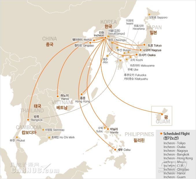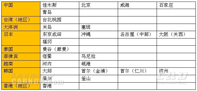 濟(jì)州航空通航目的地: