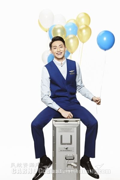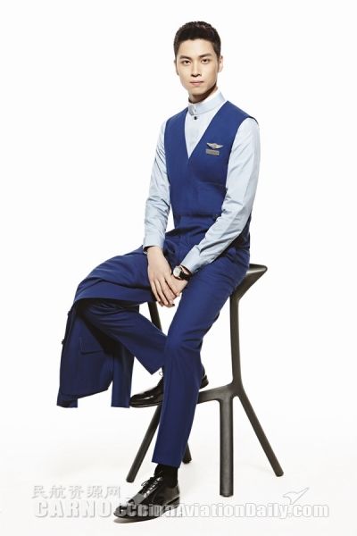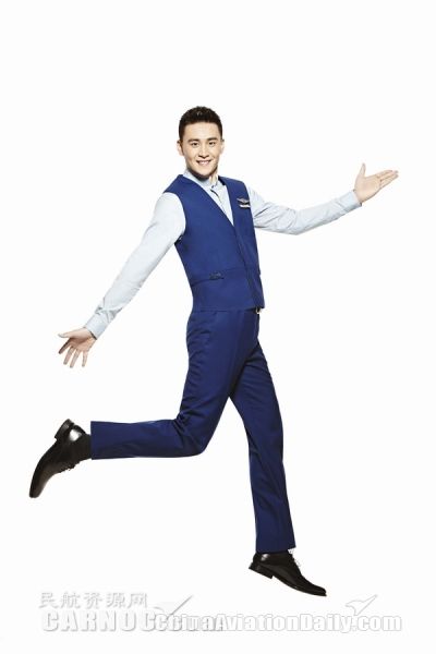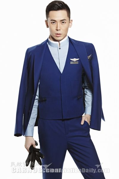 新制服的收腰式馬甲,視覺上拉高了男乘的腰線,讓原本高大帥氣的男乘更顯修長;與女乘連衣裙一致的立領(lǐng)加白色內(nèi)襯設(shè)計(jì),整體視覺效果突出了廈航特色。