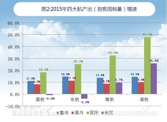 筆者根據(jù)四大航2015年運輸生產數(shù)據(jù)進行整理,四大航2015年運輸生產可圈可點。