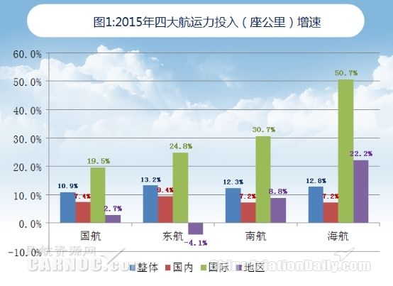 據(jù)民航局公布的數(shù)顯示,2015年,全行業(yè)完成運輸總周轉量850億噸公里、旅客運輸量4.4億人次、貨郵運輸量630萬噸,同比分別增長13.6%、11.4%和6%,民航繼續(xù)保持較快增長態(tài)勢。其中,運輸量總周轉量首次突破800億噸公里,旅客運輸量首次突破4億人次,這都表明中國民航業(yè)整體規(guī)模已經(jīng)上升到了一個新的臺階。中國民航業(yè)的快速增長一方面是與國內居民的旺盛需求分不開的,另一方面也與民航市場參與的主體航空公司的加大投入、積極開拓市場分不開。