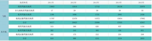 中國民航駕駛員執(zhí)照數(shù)量統(tǒng)計表