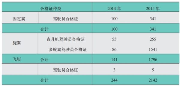 截至2015年12月31日,民用無人駕駛航空器系統(tǒng)(以下簡稱“無人機(jī)”)駕駛員合格證總數(shù)為2142個。主要分布在各民用無人機(jī)生產(chǎn)研發(fā)企業(yè)、相關(guān)應(yīng)用單位以及大專院校等。