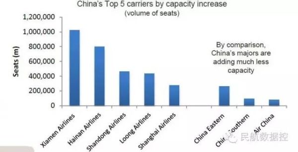 五家航空公司為我國(guó)航空運(yùn)力的快速增長(zhǎng)做出了巨大貢獻(xiàn)。2016年8月這5家航空公司的座位數(shù)比2015年8月多300萬(wàn)個(gè)。相比之下,我國(guó)主要航空公司的座位數(shù)僅增加40萬(wàn)個(gè)。值得注意的是廈門(mén)航空和長(zhǎng)龍航空,廈門(mén)航空的運(yùn)力增加了40%,2016年8月運(yùn)營(yíng)350萬(wàn)個(gè)座位,而2015年8月只有250萬(wàn)個(gè);長(zhǎng)龍航空的座位數(shù)從2015年8月的53000多猛增9倍,2016年8月達(dá)488000個(gè)。海南航空也顯著增長(zhǎng),其運(yùn)力增加28%,其中在長(zhǎng)沙、蘭州和?跈C(jī)場(chǎng)有明顯增加。山東航空和上海航空也取得約20%的增長(zhǎng)。這些航空公司在青島、濟(jì)南、溫州和鄭州等機(jī)場(chǎng)的份額不斷增加。