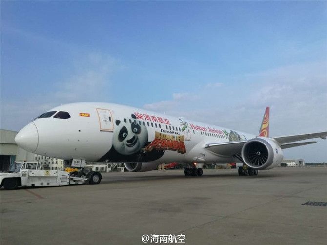 圖:海航“功夫熊貓”主題彩繪波音787-9飛機