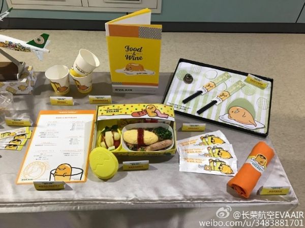 蛋黃哥彩繪機(jī)機(jī)艙內(nèi)的頭墊紙、抱枕、餐具、紙杯、餐巾紙、安全需知卡、撲克牌、兒童餐盒等多達(dá)30項(xiàng)服務(wù)用品,皆以蛋黃哥圖騰進(jìn)行設(shè)計(jì),就連空乘的圍裙上也有蛋黃哥的陪伴,機(jī)上還提供限定餐點(diǎn),主打“蛋”料理。