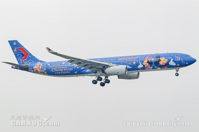 機(jī)身呈現(xiàn)了上海迪士尼度假區(qū)的奇幻童話城堡以及米奇、米妮歡迎游客來(lái)到上海迪士尼的圖案。