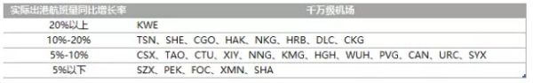 4.各機(jī)場實(shí)際出港航班量&同比增長率