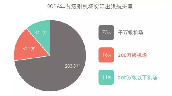 2016年千萬級機(jī)場實(shí)際出港航班量為283.3萬班次,占國內(nèi)機(jī)場實(shí)際出港航班總量的73%;