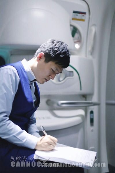 又受到了旅客的表?yè)P(yáng),到后艙自己偷偷地樂(lè)一會(huì)兒~