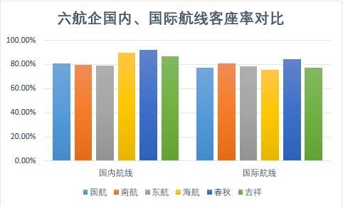 國內(nèi)航線客座率方面,春秋航空以91.79%居第一位,海航的89.95%位列第二。國際航線客座率方面,春秋以84.22%取勝,吉祥的77.29%和海航的75.33%緊追不放。