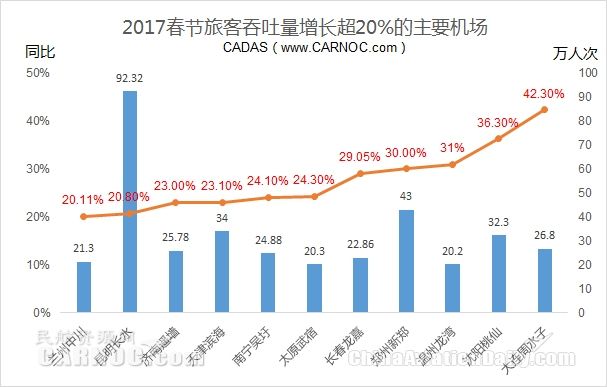 圖4:2017春節(jié)期間旅客吞吐量增長超過20%的主要機場