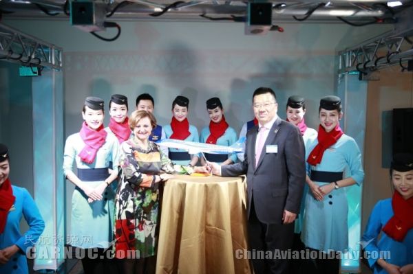 美國紐約,2017年2月15日——在福州-紐約航線首航當(dāng)日,廈門航空與聯(lián)合國在紐約聯(lián)合國總部簽署協(xié)議,成為全球首家與聯(lián)合國開展可持續(xù)發(fā)展目標(biāo)合作的航空公司。在簽約儀式上,廈航總經(jīng)理趙東向聯(lián)合國副秘書長克里斯蒂娜·加亞克贈(zèng)送了一架特殊涂裝的飛機(jī)模型。中國常駐聯(lián)合國代表、特命全權(quán)大使劉結(jié)一,聯(lián)合國副秘書長吳紅波等眾多領(lǐng)導(dǎo)共同出席。