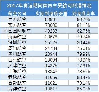為期40天的2017年春運(1月13日-2月21日)于21日落下帷幕。 春運期間內(nèi),全國總執(zhí)行客運航班約51萬架次,相比去年同期(2016年1月24日-3月3日)增長9.33%,其中除夕到元宵節(jié)期間航班量占比超60%。雖航班量有所增長,但準(zhǔn)點率相比去年同期下降11.17%。