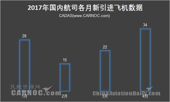 圖:4月份國內(nèi)航司新引進(jìn)飛機(jī)數(shù)量