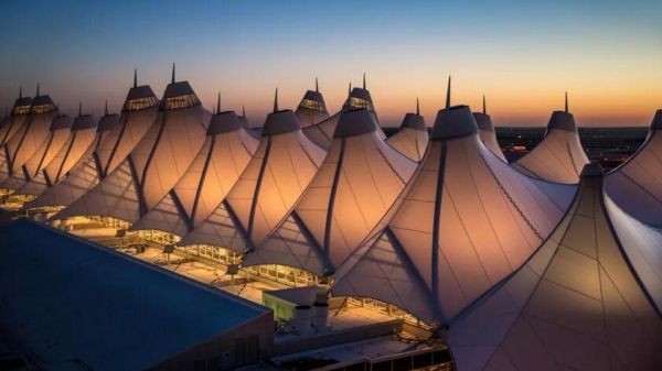 美國機場的建筑設(shè)計常常差強人意,而丹佛國際機場用織物覆蓋的帳篷狀頂篷設(shè)計卻成為一大亮點。