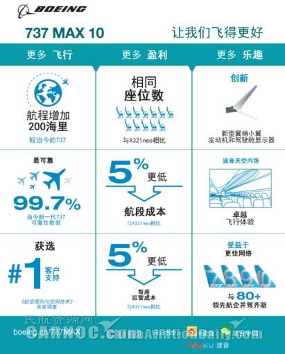 737 MAX 10延續(xù)了MAX家族對(duì)競(jìng)爭(zhēng)機(jī)型的航程優(yōu)勢(shì),而且航段成本和座英里成本分別低5%。