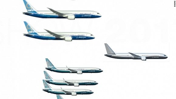 圖:波音公司在巴黎航展上的新機(jī)型展示圖