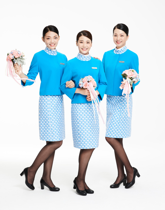 色彩上,四種藍(lán)色系的運(yùn)用,體現(xiàn)了廈航VI標(biāo)識的精髓,運(yùn)用于男士西裝、襯衫和女士連衣裙、小外套等,層次分明,又渾然天成。