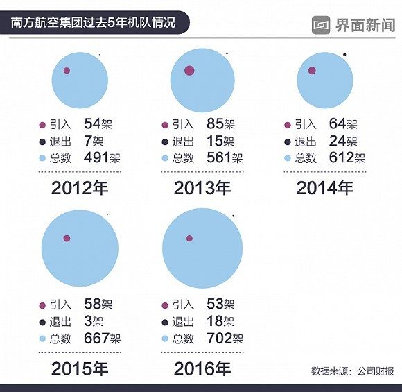 過去5年時間,南航的機隊規(guī)模從不到500架攀升到超過720架,一躍成為亞洲規(guī)模最大的航空公司,同一時期,有67架飛機退出南航的機隊。
