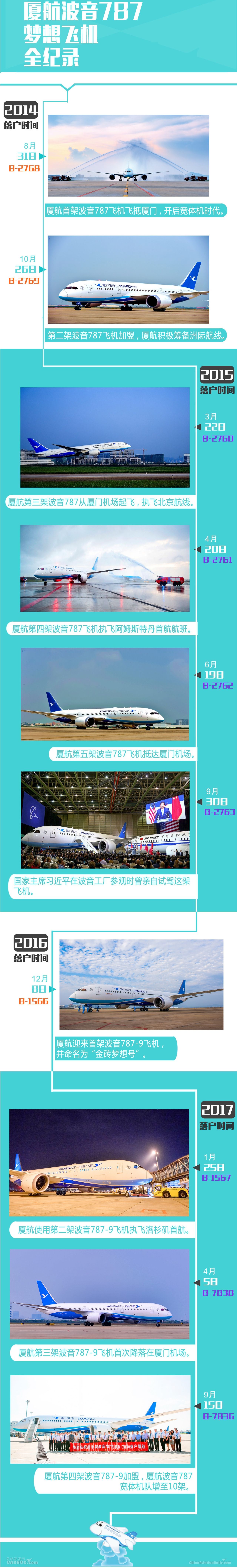 2014年8月31日,廈航引進(jìn)首架波音787-8飛機(jī),由此邁入寬體機(jī)時(shí)代。2015年7月26日,廈航使用波音787-8開通廈門—阿姆斯特丹航線,正式進(jìn)軍洲際航線市場(chǎng)。